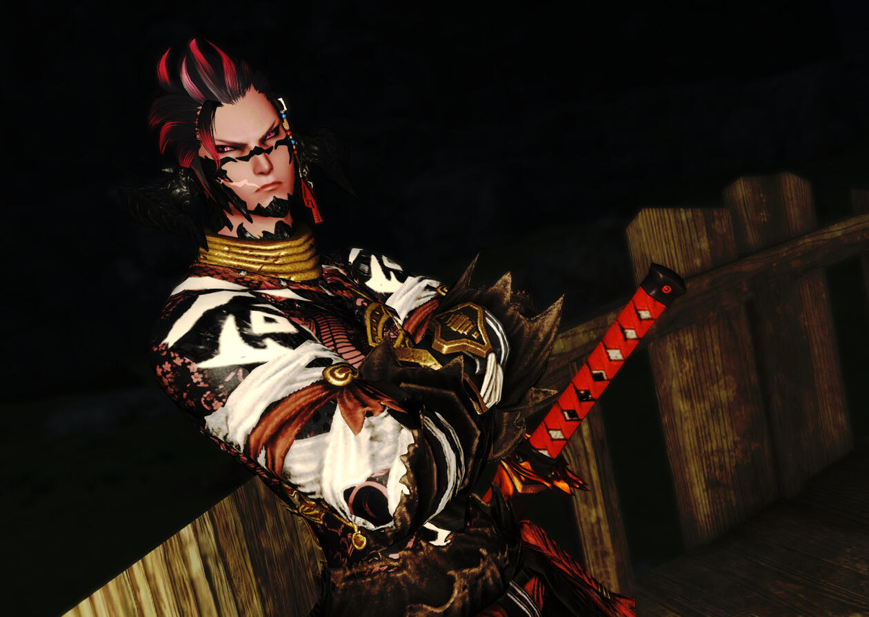 appearance more often than not, Sohkatani's lips are graced with a bright, welcoming smile, though can twist into an antagonistic sneer should she become involved in a situation with a rival Xaela tribe or other enemy. likewise, her striking blue eyes often reflect warmth and mirth, but can just as easily hold a tempest of fury and passion. she is not one to conceal what she feels, wearing her heart on her sleeve for all to see. her build is lithe and toned, though small for even the women of the xaela. she is not without a certain feminine softness, however. of note, her tail is somewhat longer than that of her kin and the tip of it has been sharpened into a blade-like point.