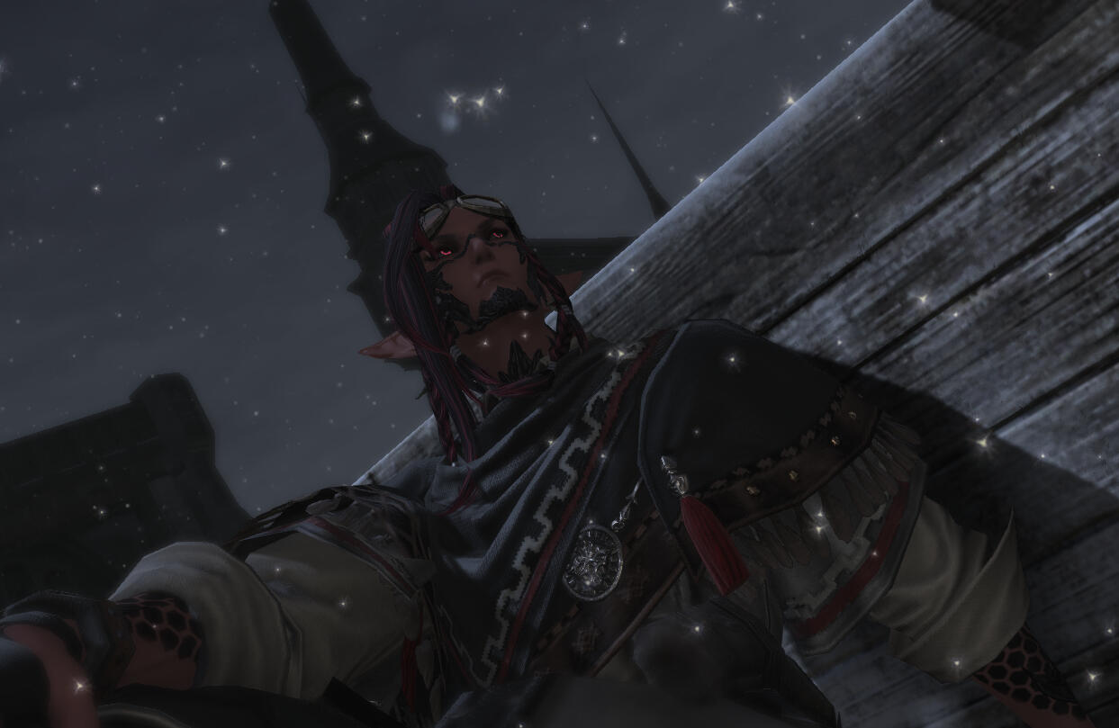 when sohkatani came into the world, the tribe ugdan looked into her eyes and determined that this was her third life, having shined brightly enough in Nhaama's eyes to be reborn yet again to the Dotharl tribe. most memories of her first and second lives elude her, though when she dreamwalks, she is occasionally blessed with visions of the warrior she had been twice before. in the first, she had been cut down during a battle with the Kharlu, when the opposing tribe invaded Dotharl Khaa; in her second life, she was slain by the Oronir during the Naadam.Raised at Dotharl Khaa as a blood-thirsty daughter of the Dotharl tribe, Sohkatani was trained to fight with savagery from the moment she could walk - but it was soon discovered that her true talents lay in the use of communing with and wielding the immense power of the elemental spirits. apprenticed to the tribe ugdan, she learned how to offer appropriate sacrifices to them and the borrow their magic to conquer her tribe's foes. she participated in countless conflicts with a number of other tribes, vanquishing so many that she hardly remembers any of their names.when she was twenty-three, Sohkatani left the Azim Steppe to travel to Thanalan, in search of her brother Dayiir. Afflicted with wanderlust, he had left the ever-warring plains of their home several turns earlier to see more of the world. Locating him in Ul'dah, the siblings remained together for a time, but it was not long until dayiir decided ultimately to return home - to his ill-fortune. shortly after arriving, he was brutally murdered by a band of roving Chaghan. Mad with fury and grief, Sohkatani donned warpaint and took a band of those closest to her back to the Steppe to avenge his death. Bloody retribution was had... but this only kicked off a war between the Chaghan tribe and Sohkatani and her allies. Wave after wave of Chaghan were sent to Eorzea to slay the shaman, but they were, to the last, defeated. This culminated in one final, vicious battle against a cruel and seemingly unstoppable Chaghan warlord, but when the blood-soaked field finally fell quiet, it was Sohkatani and her comrades who stood the victors. Still, she has never forgotten the multiple skirmishes and to this day, she bears a deep and unforgiving hatred for the tribe that nearly claimed her life.Returning to Thanalan, Sohkatani has claimed the desert region as her home, for now, building a yurt not far from Blackbrush Station, in a relatively tranquil valley. Being raised in a society to which honest trading and bartering was the method of obtaining essentials, she despises the nigh-worship of gil that is present in the city, but thankfully, due to her hunting and fishing prowess, she is largely self-sufficient. She can often be seen in Ul'dah, however, socializing or offering whetstones and arrowheads for sale or trade, for the few essentials she cannot obtain for herself.