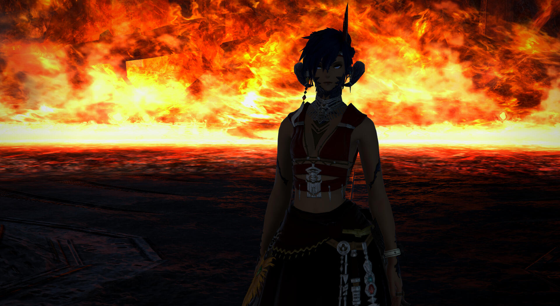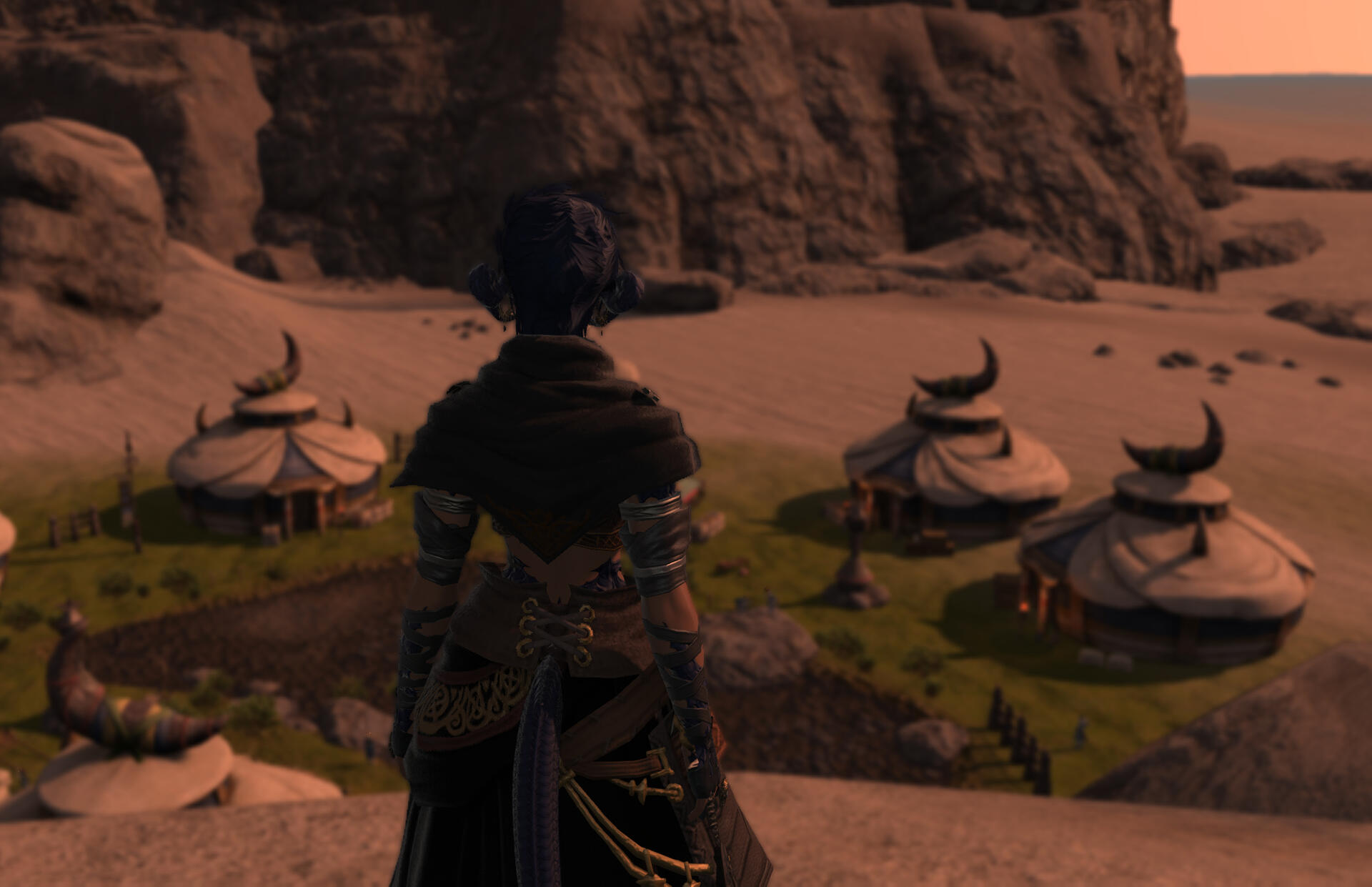 when sohkatani came into the world, the tribe ugdan looked into her eyes and determined that this was her third life, having shined brightly enough in Nhaama's eyes to be reborn yet again to the Dotharl tribe. most memories of her first and second lives elude her, though when she dreamwalks, she is occasionally blessed with visions of the warrior she had been twice before. in the first, she had been cut down during a battle with the Kharlu, when the opposing tribe invaded Dotharl Khaa; in her second life, she was slain by the Oronir during the Naadam.Raised at Dotharl Khaa as a blood-thirsty daughter of the Dotharl tribe, Sohkatani was trained to fight with savagery from the moment she could walk - but it was soon discovered that her true talents lay in the use of communing with and wielding the immense power of the elemental spirits. apprenticed to the tribe ugdan, she learned how to offer appropriate sacrifices to them and the borrow their magic to conquer her tribe's foes. she participated in countless conflicts with a number of other tribes, vanquishing so many that she hardly remembers any of their names.when she was twenty-three, Sohkatani left the Azim Steppe to travel to Thanalan, in search of her brother Dayiir. Afflicted with wanderlust, he had left the ever-warring plains of their home several turns earlier to see more of the world. Locating him in Ul'dah, the siblings remained together for a time, but it was not long until dayiir decided ultimately to return home - to his ill-fortune. shortly after arriving, he was brutally murdered by a band of roving Chaghan. Mad with fury and grief, Sohkatani donned warpaint and took a band of those closest to her back to the Steppe to avenge his death. Bloody retribution was had... but this only kicked off a war between the Chaghan tribe and Sohkatani and her allies. Wave after wave of Chaghan were sent to Eorzea to slay the shaman, but they were, to the last, defeated. This culminated in one final, vicious battle against a cruel and seemingly unstoppable Chaghan warlord, but when the blood-soaked field finally fell quiet, it was Sohkatani and her comrades who stood the victors. Still, she has never forgotten the multiple skirmishes and to this day, she bears a deep and unforgiving hatred for the tribe that nearly claimed her life.Returning to Thanalan, Sohkatani has claimed the desert region as her home, for now, building a yurt not far from Blackbrush Station, in a relatively tranquil valley. Being raised in a society to which honest trading and bartering was the method of obtaining essentials, she despises the nigh-worship of gil that is present in the city, but thankfully, due to her hunting and fishing prowess, she is largely self-sufficient. She can often be seen in Ul'dah, however, socializing or offering whetstones and arrowheads for sale or trade, for the few essentials she cannot obtain for herself.